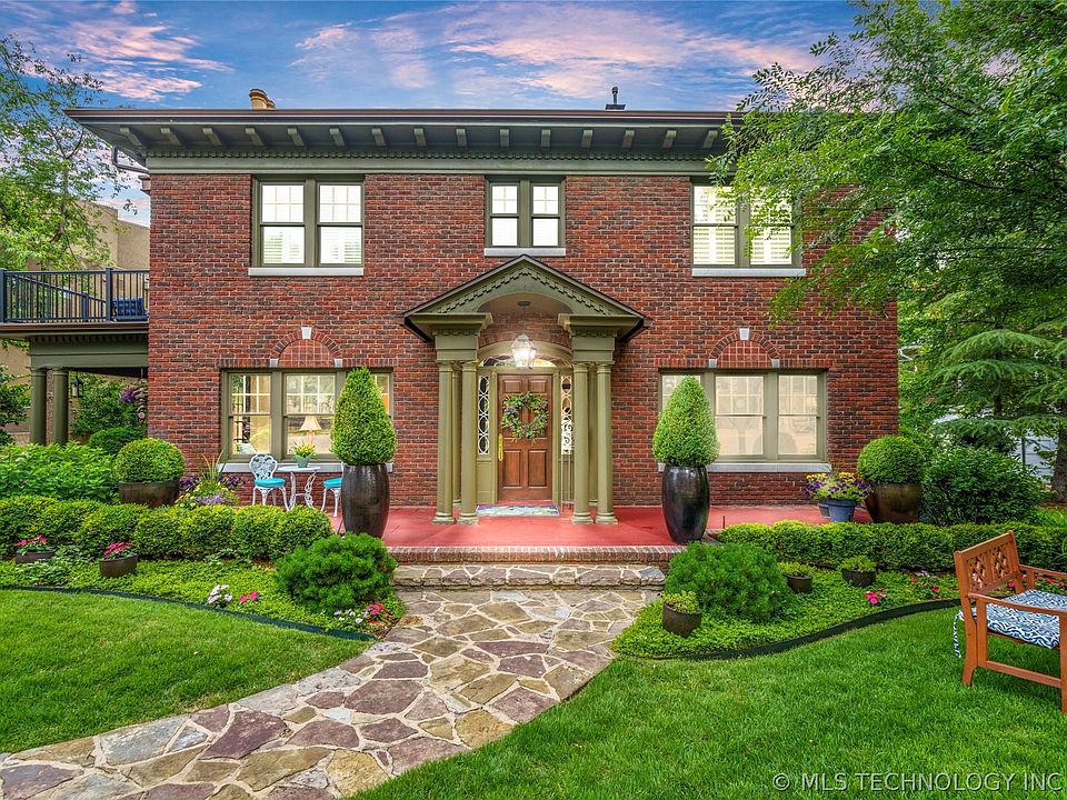 Separate, sunny breakfast room. Butler's pantry. Back door mudroom entry. New roof. Beautifully updated. Larger rooms. Center hall plan. Den next to formal living room. Covered outdoor sitting porch. Wine cellar in basement.