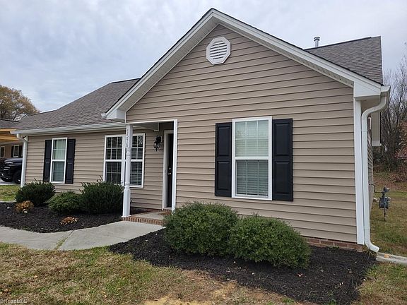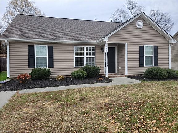 One of the newer homes in Burlington's Arden Crossing wants to be yours; this subdivision Phase 5 home is only 6 years old and offers a lot for the price. Why rent when you can buy this comfy, affordable 3 BR / 2 full bathroom home; buy and start building equity! Home exterior has great street appeal and features a covered stoop, a patio and a roof with architectural shingles that looks new. The interior offers a vaulted ceiling living room/kitchen and a primary bedroom with an ensuite full bathroom. Kitchen features an attached microwave, dishwasher and stove; also, the refrigerator conveys. You'll love the large shed in the backyard with a ramp and pull-up door that is great for storing your mower and anything else. Natural gas heat and water heater; central air. Home offered "as is" only due to financial limitations of seller; per seller, there are no known problems or issues with this newer home, just a few minor cosmetic issues. Priced near tax value!!! Act fast or wish you had!!!
