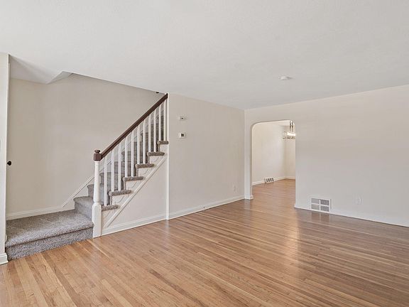 Move in ready - Three bedroom, 1 bath town home. Freshly painted with neutral paint throughout. Refinished hardwoods in the living room and dining room. Updated kitchen with new plank flooring, quartz counter tops, tile backsplash and stainless appliances. New carpeting on stairs leading to the second floor as well as in the hall and all three bedrooms. Renovated hall bath with new tile flooring, shower surround, vanity, faucet and toilet. Partially finished basement with new flooring and laundry tub. Basement walkout with access to rear of home , parking spot and garage. All new lighting fixtures throughout the home. Additional upgrades include new windows, new HVAC system, new garage door, new interior doors and hardware and upgraded electrical. Don't let this one get away! All deposit checks must be casher checks as per Broker policy.