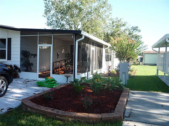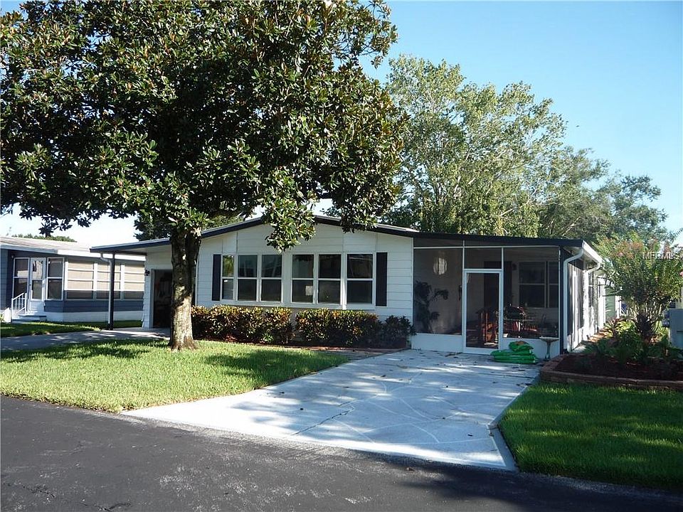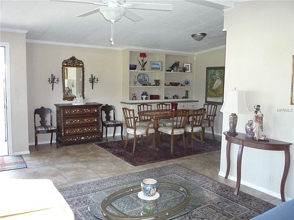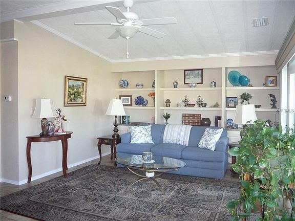 Immaculately maintained and upgraded makes your new home ready-to-move in. Spacious is an understatement. The added screen room with accessible ramp leads to an enclosed Florida room, an office/guest room, and very spacious storage room--all with A/C (no heat). Sliders take you into the island kitchen with built-in oven and a dream come true walk-in pantry. The living room has built-in shelving/cabinets as do the dining room and family room. The master bedroom boasts a walk-in closet and shower while the second bedroom has direct access to the second bath with tub with shower and an 11 x 15 Cabana/sitting room/or your choice. All the extras add space over and above. Inside laundry, insulated windows, upgraded tie downs, AC a little over a year old with a transferable 5-year heating and cooling maintenance contract, home warranty offered, a roof that's only 6 months old, and a rare find in this beautiful, well maintained 55+ community--a full garage!! The community offers a pool, tennis, small fishing lake (with throwback rule), a gathering place with its own stage, fireplace and kitchen. All the extras add to the space which means this is priced to sell! Offering home warranty! Waiting could be a mistake. Call now for your private showing.