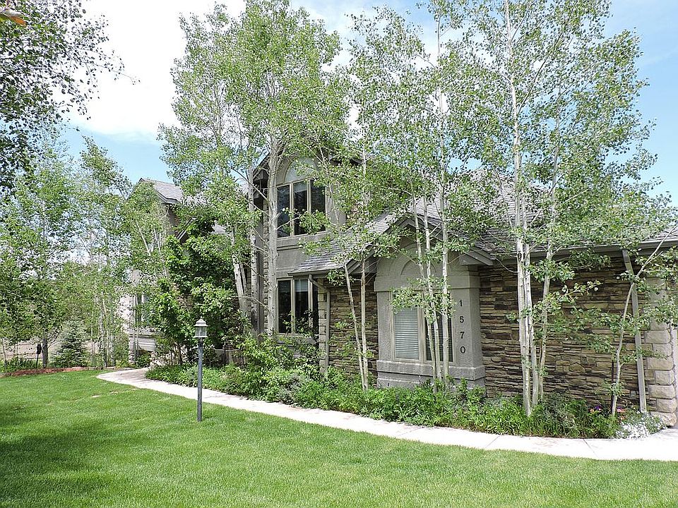 Classically elegant stucco and stone two story. Mature landscaping including pines, aspens and an assortment of other large trees and bushes. Located on a .49 acre lot with a grass back yard and 34x10' deck perfect for entertaining. This gracious home has been updated for you. Kitchen features quartz countertops, a glass mosaic backsplash and a roll around island for extra prep space. Formal Living Room with a new top of the line heat and glow fireplace, with marble surround, crown molding, 24" marble porcelain tile floor and new paint walls and ceiling. New flooring (24"marble porcelain tile) in Dining Room and new paint and window covering. Main level bath has been totally updated- lighting, mirror, granite , marble tile shower, transparent glass shower door. Master bath new faucets , sinks, countertop, toilet, marble/granite shower, lighting,, frameless glass shower door. Also, new 50 gallon hot water heater in 2015, stone added to front and side of home, new driveway, security doors etc... Two story foyer, grand staircase, gleaming hardwood floors throughout most of the main level. Formal Dining with coffered ceiling, crown molding, Kitchen has stainless steel appliances, pantry, counter bar and walk-out breakfast room. Family Room has a stacked stone fireplace framed by floor to ceiling windows on each side. Main level bedroom with updated bath and large walk-in closet, cheerful laundry room with lots of counter space and window. Upstairs a large and stunning master suite with double door entry, vaulted ceiling, large window, his and hers closets,, gorgeous updated master spa bath. Catwalk leads to two more bedrooms which share a full bath with TWO toilets. Downstairs 2 bedrooms, office 2nd Family Room and 3/4 bath.