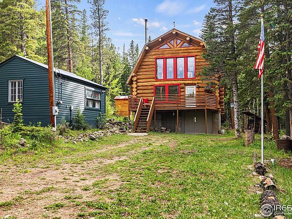 Nestled in the serene beauty of Colorado's mountains, this cherished cabin has been a beloved retreat for one family since 2000. Located in an idyllic setting, with a tranquil stream meandering through the property and bordered by expansive national forest, this is the epitome of a mountain getaway. From your sunny and private backyard, enjoy the soothing sounds of the stream and picturesque views of the adjacent lake. Endless opportunities for outdoor exploration await right outside your door as the property is bordered by National Forest. Easy access from Peak to Peak Highway and Lump Gulch Road. Benefit from the appeal of low Gilpin County taxes and complete privacy, making this a rare find. Private Snowline Lake membership provides nearby lake activities such as paddleboarding, canoing, fishing, sunbathing . Start your mornings on the sunny front porch with a cup of coffee, soaking in the tranquil surroundings. Recently refreshed with fresh exterior paint, the cabin exudes classic charm with its beautiful log cabin design and massive timbers. Inside, a wood stove in the open living room with vaulted ceilings creates a cozy atmosphere, complemented by a large open loft offering additional sleeping arrangements for gatherings. The property features a large functional standing crawlspace (22X28') with the mechanicals, laundry, workshop space, and ample storage. A large detached bunkhouse with power provides flexibility for additional sleeping quarters, a recreation room, or an artist's studio. Discover the perfect blend of rustic charm and modern conveniences in this mountain oasis. Whether seeking a weekend getaway or a year-round residence, this property offers the ideal retreat to unwind and connect with nature. 5 min to Rollinsville, 10 min to Nederland.