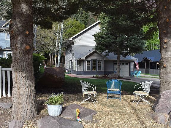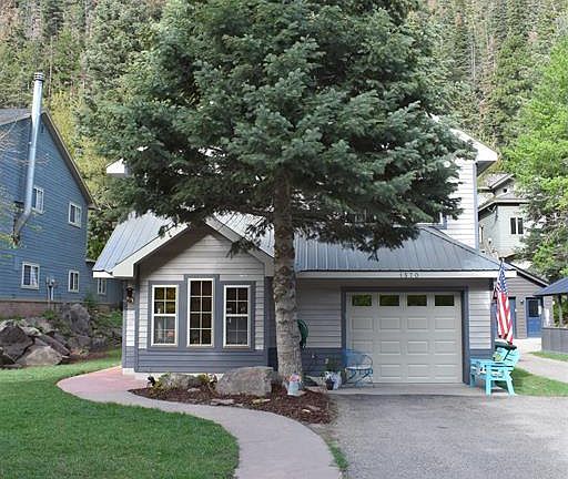 This beautiful home is nestled in the valley one mile north of Ouray, Colorado! Located just across Oak street from the Ouray River walk trail which is great for a walk or a cross country ski in the winter. Easy access to Ouray and all it has to offer. Big mature pine trees, landscaped yard, fenced back yard, patio, and beautiful mountain views are some of the features this property offers. The house is cozy and inviting with lots of windows, a skylight, newer carpet and paint. The first floor has a large living room, dining area, kitchen, pantry, a half bathroom with a laundry closet and a one car garage. The upper level has two guest rooms each with two windows, and high ceilings. These two bedrooms share a bathroom. The primary bedroom is also located on the second story with high ceilings and south facing light and bright windows. There is an en-suite bathroom with a double sink vanity, separate soaking tub and shower, and a separate toilet room. There are two closets for the primary room as well. You can access the fenced backyard through the dining room door. There is a concrete patio, grass and mature trees all ready to enjoy. There is also a nice garden storage shed in the corner of the yard. From the front of the house you can see Gold mountain and down the valley. This home has been a successful short term rental the previous two years. It is currently being used as the sellers primary residence. Come see what this charming house has to offer you!