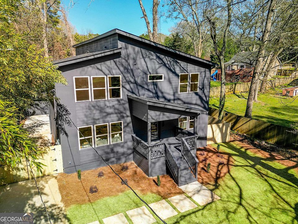 Discover the epitome of contemporary living in this stunning new construction home, perfectly situated for both leisure and convenience. Every detail of this home has been meticulously crafted, from the real oak hardwood floors that grace each room, to the detached two-car garage that ensures ample space for vehicles and storage. The heart of this home is undoubtedly the gourmet kitchen, designed for both culinary excellence and family gatherings. It features a large island adorned with a waterfall quartz countertop and is equipped with high-end appliances, setting the stage for unforgettable meals and moments. Adjacent to the kitchen, an elegantly designed formal dining room awaits, ready to host large family dinners in style. Upstairs, the layout continues to impress with a loft, a guest en-suite boasting a custom tiled bathroom, and large secondary bedrooms, providing ample space for family, guests, and home office needs. The oversized owner's suite is a haven of tranquility, featuring a luxurious spa-like bathroom with a deep soaking tub and his and hers vanities, offering the perfect retreat after a long day. Outside, the covered deck overlooks a beautifully fenced backyard, ideal for summer gatherings and outdoor enjoyment. Just a short walk to Dekalb Memorial Park, Bessie Branham & Coan Park, where amenities cater to every age, making family outings both effortless and memorable. Easy access to interstates, downtown Atlanta, Decatur, and Hartsfield-Jackson Atlanta Airport, this home is not just a residence but a gateway to a lifestyle of convenience, comfort, and luxury. Don't miss the opportunity to make this exquisite property your new home.