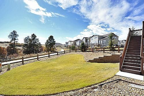 $30,000 invested at design center + wc, landscape, fence, appls. Buyer's Benefit! The Grange, pools. Walking trails! Red Hawk golf. Wonderfully appointed. Grand open space! Dynamite views! Gourmet kitchen, 42 maple, granite, cherry hardwood, stainless. Travertine fp. 2 large lofts. Spa-like master bath. Easy access I25, 470, DTC & shopping! New medical center/hospital. Tot park, open space, bluff views. Only one neighbor! Native flora & wildlife. Kitchen, double oven, 5 burner stove top, big island w/breakfast bar, pendant lighting. Morning room in bay window. Attached living room, travertine fireplace, wired for surround sound. TV conduit above fireplace & near ent center. TWO large lofts, versatile space, office, playroom, sunroom. 2 bedrooms plus master suite w/coffered ceiling, master ba, tile, granite, oval soaking tub. Other notable items include: high efficient construction, dual AC/dual furnaces, upgraded carpet, wired for security, bright walkout basement & landscaped!