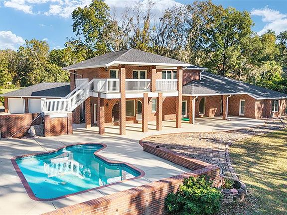 Welcome to this charming two-story red brick home tucked along the back of the driving range in the sought after Country Club of Ocala, offering unmatched views straight down to the clubhouse. If you love golf or have golfers in the family, having a driving range and full practice center right in your backyard is an incredible bonus! Inside, the home offers a comfortable and well-designed layout with 4 bedrooms and 3.5 bathrooms, along with a 3 car garage. The spacious primary suite is located downstairs and features an attached den/office, perfect for working from home or enjoying a quiet reading space. A second bedroom with its own full bath is also conveniently located on the main floor. Large picture windows throughout the main living areas fill the home with beautiful natural light and capture peaceful views of the oversized backyard and golf practice area beyond. The kitchen includes a center island and a cozy breakfast nook overlooking the grounds, while the formal living room with a gas fireplace and separate dining room offer wonderful spaces for hosting. Situated on almost 2 acres, this property provides a great backyard. Upstairs, a generous family room with built-in cabinetry and an additional room with its own bar both open to a lovely balcony, an inviting spot to soak in the panoramic golf views. Two additional bedrooms share a Jack-and-Jill bath, creating a perfect layout for family or visiting guests. Whether you're raising a family or a true golf enthusiast seeking the ideal setting, this has an unbeatable location. Roof was replaced in 2019, a/c unit in master in 2015 and main unit in 2016 and hot water heaters replaced in 2017 and 2019.