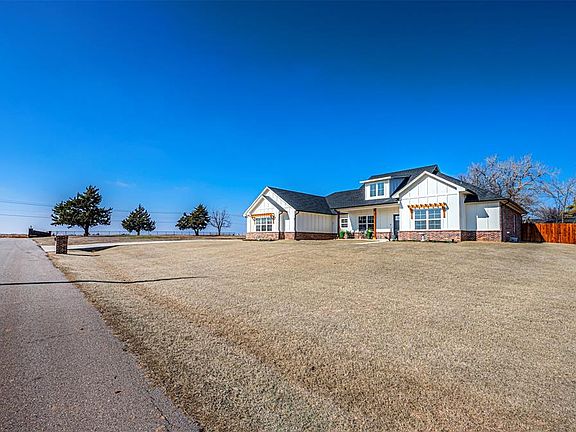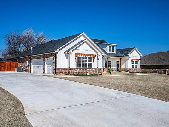 Seller will pay 5k in buyer closing!! "WELL, HELLLLO GORGEOUS!!" This one is a showstopper!! Beautiful 2610-sq-ft home has all the charm & function you could want in a house. This one-story wonder will make you forget all others. From the high ceilings to the large windows, no detail has been overlooked! House sits on a .52AC + w/a gated entry for the one street community. The high-end kitchen has an open floor plan concept to living area that has loads of natural lighting & is hosted by tall ceilings & a fireplace. The walk-in pantry has a whole life of its own, featuring extra counter space & designer-built ins w/ extra cabinetry and storage. The kitchen is graced w/a large center island w/all builtin appliances w/a good size dining area, modern tile backsplash & all the fine details that make it a chef's dream kitchen. Designer finishes throughout the home & high-end upgrades which makes this home amazingly stunning! A great study/office area just off the entry can be another opt. bedroom if needed. The owner's suite is a spacious gem & is truly impressive, w/ample space. The owner's luxurious bath comes w/ double vanities, a private water closet, a spacious walk-in closet (access to laundry room from master closet), soaker tub, walkin shower. With a split floor plan - the 3 guest beds share a guest bath area & are separated from the owner's suite on the opposite side of the home. The large back yard offers a wood privacy fence & a covered back patio is ideal for your family hangouts/BBQ nights with friends. Enjoy the best of both worlds' w/a beautiful, country feel. Also included 3-car garage w/842 square feet has plenty of space for a workarea, storage and a built-in storm shelter. A builtin Generac generator is in place /for a peace of mind along w/a yard sprinkler system for immaculate landscaping.... all this & You can add a shop! Amenities: STORM SHELTER-GENERATOR-SPRNKLER SYSTEM-HIGH END FINISHING TOUCHES-GATED ADDITION-LARGE YARD .52 ACRE-