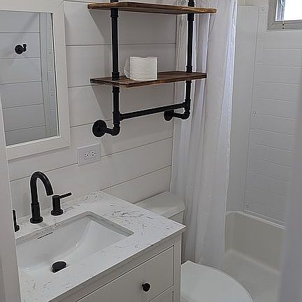 Completely remodeled mobile home located in Oceanfront Court. Everything down to the electrical and plumbing has been remodeled. Oceanfront Court Rules: No dogs or golf carts allowed. Cannot rent or live in home year round. Can stay up to 21 days per month. Lot rent includes water, garbage and cable. $500 transfer fee is required when selling. Remodel includes brand new: 3 zone mini split system Vinyl siding (board and baton) windows Drywall ceiling LED can lights in every room Kitchen (cabinets, soft close, custom) Concrete countertops Bamboo luxury vinyl flooring (waterproof) Water lines Tankless hot water heater Bathroom vanity Includes a large outdoor deck, outdoor shower, storage building, ample parking.