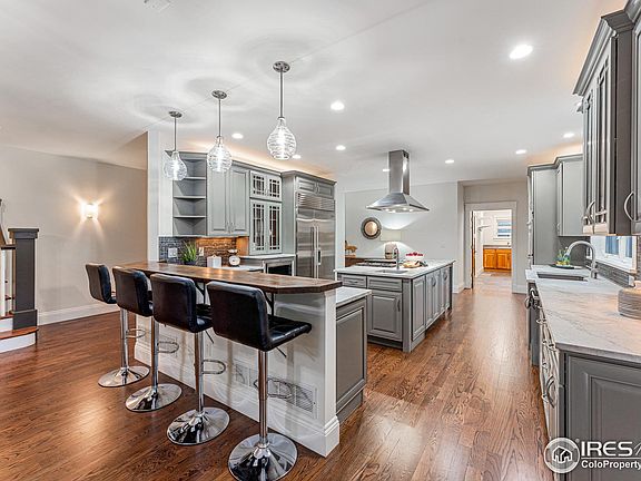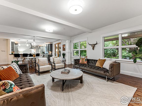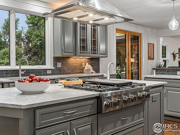 Discover this private, half-acre lot in North Boulder. Masterfully hidden amidst mature trees, this grand home boasts an intimate layout. Designer kitchen, with ample cabinetry and high-end appliances, overlooks the backyard. On the main level are two living spaces, two offices/bedrooms with en-suite baths, two fireplaces, and a traditional feel with wood flooring. Luxe primary with ensuite, balcony and closet with dedicated laundry. Separate wing and finished basement with even more space.
