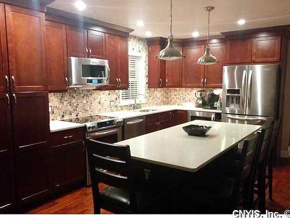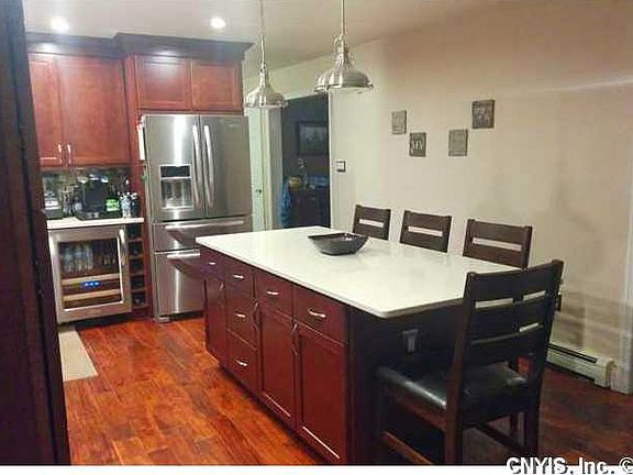 Many upgrades starting with the gorgeous kitchen with glass wall tiles, island, quartz counters & stainless steel appliances & wine chiller. 1st floor offers large living rm, formal dining rm, master br suite with double sink vanity, shower & whirlpool tub, half bath with laundry rm & bonus room overlooking the above ground pool, deck & gazebo. 2 bedrooms up, a 2nd full bath & open space with many uses. Family rm in finished basement could be 4th br plus there's a workshop, attached garage & separate shed. On over 2 acres. House has been rented until June 2015.