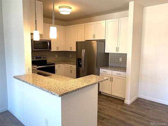 Beautiful, spacious, 2 Bed/2 Bath condo located with easy access to Parker Rd., Arapahoe Rd., and E470, as well as shopping, dining and entertainment. This newly constructed condo is beautiful, bright, and spacious. Amenities include; vinyl plank flooring in kitchen and living/dining area, a gas fireplace, vaulted ceilings, central heat & air, and a balcony with a storage closet. The kitchen has a dining area, stainless steel refrigerator, dishwasher, built-in microwave and glass top oven/stove. There are granite countertops throughout, a tile backsplash in the kitchen, tile floors in the bathrooms, 2" blinds, and a walk in closet in the large master bedroom. There are stacked, front-loading washer and dryers in unit as well. Water, sewer and trash are included. Community amenities include a pool, hot tub, and fitness center. Great investment opportunity as well. Current tenant in place through May 31, 2025. May be willing to extend.