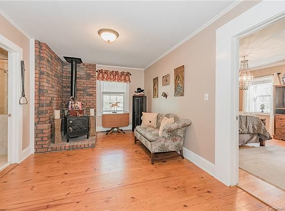 Unique ranch situated on over an acre of land. Large front room which connects the kitchen to living room. Great for entertaining. Many updated features that include a beautifully renovated Master Bath. Huge fenced in yard with shed and barn. Room for a horse. Very spacious house as well as land. Close to 485 on off ramp. Shopping plaza nearby.