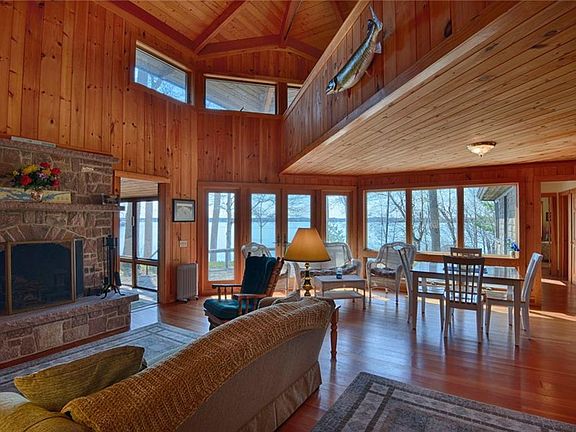 Looking for an island home near Clayton with spectacular views of islands and the shipping channel? Look no more! This is a 1800 sq.ft. contemporary home built in 2002 and has been well looked after and move-in ready! Maple Island is sparsely populated and very beautiful. Basically this is a one story home with a loft, so really no stairs to climb. Some of the unique features of the home are open floor plan with separate bedroom wings, fir flooring, knotty pine walls, wood burning fireplace, screen porch, large deck and two slip boathouse. The master bedroom and bath is in a private wing which provides a perfect retreat from the rest of the house and also allows access to the screen porch. The loft area is used for extra sleeping space but could be used many other ways. Furnishings, well stocked tool shed, lawnmower, generator and golf cart are included. Call now for an appointment.