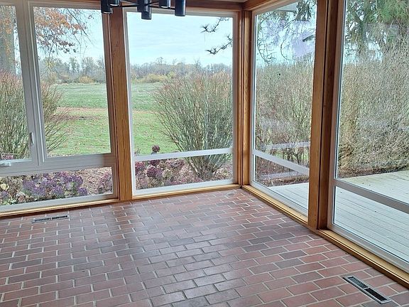 Brick-floored sunroom with abundant natural light