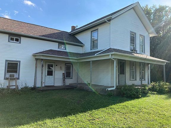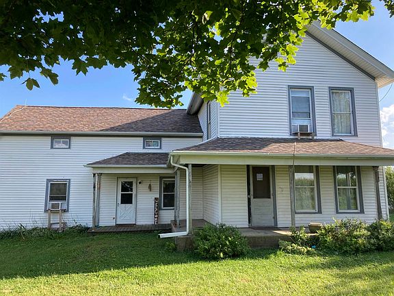 Affordable Country Living! 5 Acres with barn and 3 outbuildings. Don't miss the opportunity to own this original farmhouse boasting 4 bedrooms and loft. Ample dining room with a bathroom vanity that is not installed but does stay, wrap around front porch, enclosed back porch, roof in 2017. Needs TLC. Emblements (corn) to be removed this harvest season.