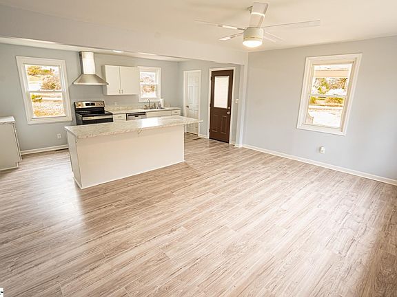 If you're looking for a great affordable home with land just minutes from lake Greenwood, 15703 is your number! 100% USDA financing eligible! This newly renovated 3 bed, 2 bath home sits on just under an acre and is minutes away from Lake Greenwood making it a great home for Air BnB/VRBO or a rental as well! Featuring an open floor plan with with new luxury vinyl planks throughout, new drywall and paint, three bedrooms, and two bathrooms with white Carrara tile flooring, you'll want to call this home! The kitchen features new shaker cabinets, new stainless appliances and an oversized island that can seat 6. The laundry room is stackable accommodating and located off of the main kitchen. New HVAC with 10 yr warranty, new plumbing, new electrical throughout, updated windows, and a new water heater makes this home move-in ready. With this much unrestricted land convenient to the lake, Greenwood, Laurens, and Clinton, the possibilities are endless for you to make it your own!