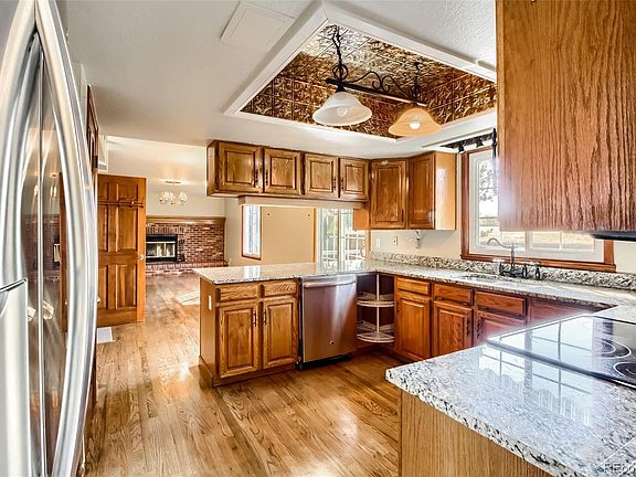 This home has rooms that flow and views that will astound! Backs to open space! Very well maintained! NEW: Roof, Exterior paint, beautiful deck with the latest in top of the line materials, remote controlled retractable awning, and newer windows. This tradition floor plan boasts 2907 square feet, 5 bedrooms, 4 bathrooms. Main level: formal living with have sculptured crown moldings and dining room, large family room with fireplace, 1/2 bath, large kitchen with stainless steel appliances, granite counters, large pantry. Upper level has 4 large bedrooms, full bathroom with granite vanity tops, large master bedroom with master bathroom, huge cedar lined walk-in closet. Basement is awesome with a mother-in-law quarters. Other features include gleaming hardwood floors, solid wood six panel doors, new insulated garage door, sprinkler system, abundant SUNSHINE & gorgeous VIEWS from all sides. Very CONVENIENT to highways, shopping, medical, work. Nicest, most unique lot in Brookvale. 3 eating areas: kitchen counter, kitchen sit down area & also formal dining area. Dead end of Jasper/Gunnison provides HUGE side entry for RV, boat, truck. Soaring pines & huge open space provide total privacy on all 4 sides! Large rock pond & water fountain needs attention (update/repair), but are gorgeous. Super gardener designed beautiful garden of generational flowers, shrubs & trees, including iris from Jewel's Garden and Mandy's Beauties, roses & peonies from my grandmother in ARK. About 15 climbing pink/purple clematis vines & much more. Beauty stops the walkers to pause and enjoy. Large basement apt is 1 ½ yrs. old & features retro red refrigerator! All appliances, dbl closet & good lighting. New window wells 7 yrs ago. New 20' deck: fenced, lit with new blue, quality canopy. Just a gorgeous, blue sky opens above you! New AC 7 yrs ago and at that time added whole house humidifier. 2 LARGE sheds; one is new. Fence is 5 yrs. Old. GREAT, FRIENDLY NEIGHBORS!