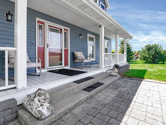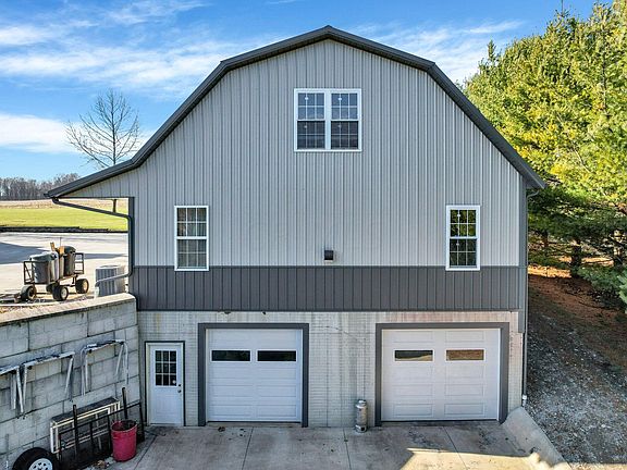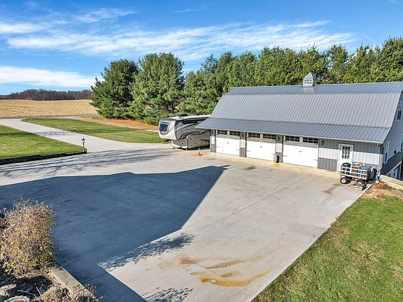 Situated on 4.58 acres of serene landscape, this stunning home offers a perfect blend of luxury & functionality. Remodeled kitchen boasts quartz countertops, 2 spacious pantries, & elegant black satin appliances. A marble FP in the family room adds charm, while the formal dining room is ideal for entertaining. The primary en suite is a retreat w/a custom FP, walk-in closet, laundry, oak wood floors, & a luxurious bathroom w/double vanity sink. 2 large secondary bdrms feature walk-in closets. The walkout bsmt is ready to be personalized w/plumbing for a full bathrm. Recent upgrades incl. a newer furnace, A/C, pressure tank, & whole house filtration system. Dream garage can accommodate 12 cars across two floors w/an elevator & 1/2 bathrm. A generator and 3rd fl offer endless possibilities!