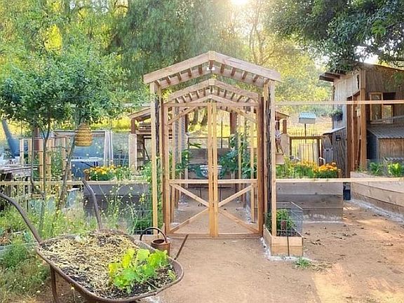 This Registered Organic and Certified Wildlife Habitat ranch is located on a private, paved road in a desirable neighborhood on the edge of oak woodland with views of rolling hills, pastures, and distant Palomar Mountain. Recent upgrades on this 1404 sq ft, 3 br 2 ba, 1 story rambler include a newer roof (2015), fresh paint inside and out, new windows, updated bathrooms, solar tube, Starlink satellite dish, and a refreshed kitchen with new dishwasher, r.o. water filtration faucet, ceramic top stove, and range hood. Electrical updates include a solar-ready electrical panel, recessed lighting, ev charger, central house & attic fans, and more. The 3.5 beautiful and usable acres are cross-fenced with non-climb horse fence, a native plant garden, mature orchard, pastures, round pen, wild habitat area, a pond, fire pit, and a seasonal creek. Several outdoor structures include a 2-stall mini horse/goat barn with new paint, siding and solar lights. A run-in horse barn with hay/tack room has a new roof, paint, gutters, front porch and attached tractor stall. Looking to homestead? You can raise bees in your own apiary with a Flow Hive and room for more. Raise chickens in a large, walk-in chicken coop with covered and open runs. A 2-layer quail breeding/laying cage is a beautiful and efficient way to raise quail. Remove the nesting boxes and raise rabbits. A fully-fenced garden with raised beds, a covered compost bin system, and an outdoor sink. To help keep your water bill low, rain barrels are located off the house, apiary, and compost roofs. Landscaping consists of native and drought-tolerant plants. This ranch is perfect for a homesteader or small family wanting to live the country life. A tractor with bucket and rotary cutter attachments is available. Talk to your real estate agent for details.