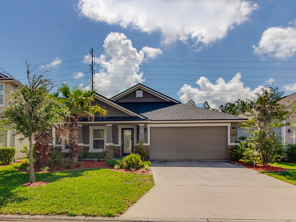 Beautiful home with ledgestone front has an open floor plan with large combined living and dining room, gourmet kitchen with SS appliances, and pantry. Spacious master suite with an over-sized closet. Laundry room inside just off the garage. Covered lanai and fenced backyard. Resort-like amenities feature pool, kid's splash park with slides & fountains, fitness center, lighted tennis courts, basketball courts, soccer field, sand volleyball court, clubhouse with kitchen, expansive covered porch and fireplace.