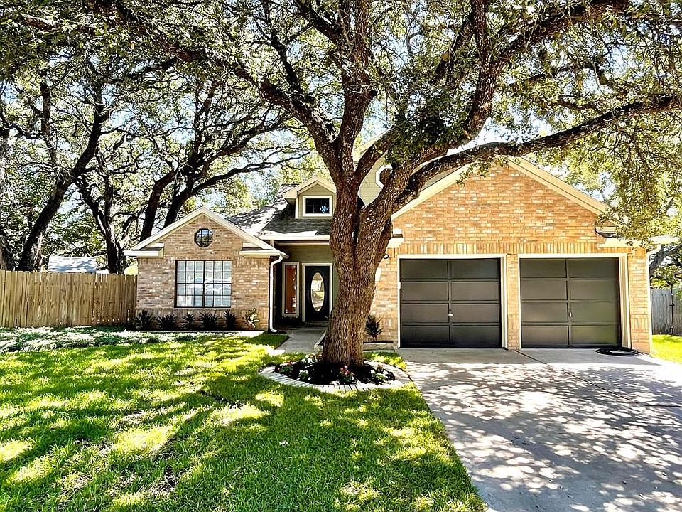 Wonderful 2-story home in the Woods of Brushy Creek on a large treed & landscaped lot on a cul-de-sac. 4 bedrooms & 2.5 baths, primary bdrm on the main level. Fresh updates to include all new: carpet in bedrooms & stairs, paint, quartz countertops & tile backsplash in kitchen, double sink vanity w/quartz countertops in the primary ba, & vanity w/quartz countertops in upstairs bath. Bamboo floors in living room, formal dining, & office/bonus room.The large kitchen features built-in bench seating. Exterior was updated with fresh paint approx 1 year ago.Spacious backyard with a privacy fence.