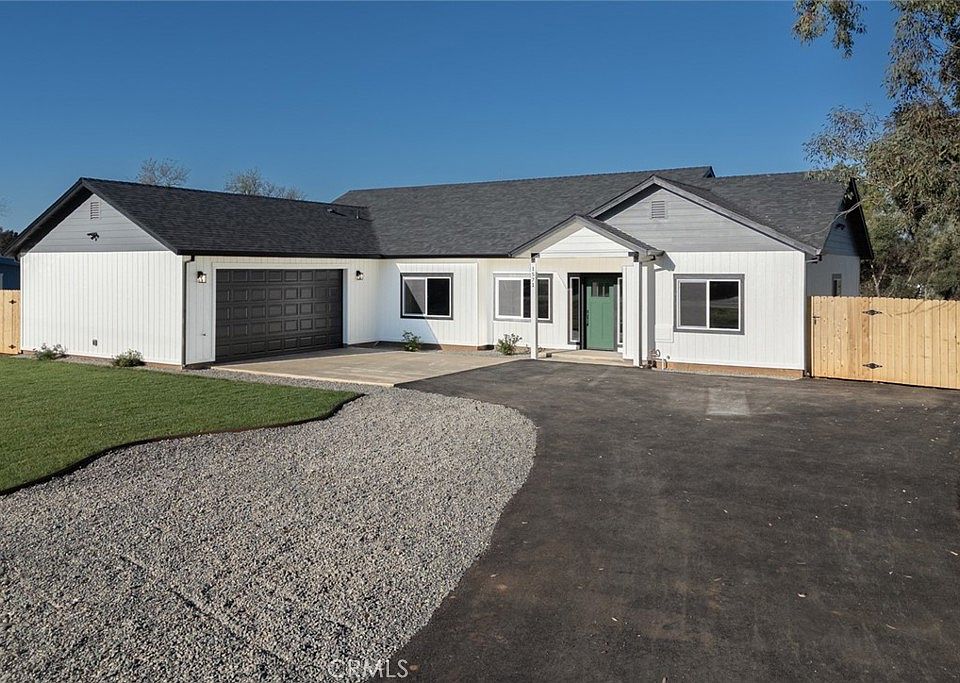 Welcome to this stunning, brand-new custom home situated on over half an acre. Whether you are seeking space to entertain, room for your hobbies, or a reliable place that is comfortable and relaxing to unwind, this home has it all. As you enter, you will notice the spacious open floor plan. The large windows and sliding glass door flood the interior with natural light, making the space feel airy and inviting. The kitchen is a chef's dream with high-end stainless-steel appliances, custom cabinetry with soft close drawers and cupboards, quartz countertops, and a large butcher block island with extra storage perfect for meal prep and casual dining. The primary bedroom has a spa like ensuite with a standing soaking tub, walk in shower with custom pebble stone tile, dual vanity, oversized walk-in closet, water closet, and TWO linen closets. No builder grade here! The home boasts 9-foot ceilings with a vaulted living room, custom cabinetry and closets, 5" baseboards, recessed lighting throughout, ceiling fans in all bedrooms, it is completely electric with OWNED SOLAR, has an indoor laundry room with lots of storage, LVP throughout, and much more. The property's backyard is fully fenced, with an asphalt to concrete driveway, 2-car garage, covered back patio, and more than enough space to park all of your toys and/or equipment. The location could not be more convenient, with easy access to highway 70, shopping on Oro Dam, or water sports on the Afterbay. Be the first to live in this pristine, newly constructed home where everything is fresh, modern, and ready for its owner!