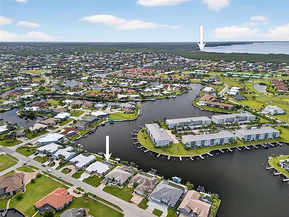 Under contract-accepting backup offers. PUNTA GORDA ISLES!! BEAUTIFUL 3 BEDROOM, 2 BATH, 2 CAR GARAGE WATERFRONT POOL HOME with SAILBOAT access to Charlotte Harbor leading to the Gulf! Private dock and boat slip, complete with 10,000 lb. lift with water and electricity. Beautiful curb appeal with new landscaping, new metal roof 2023, and irrigation system. Step inside through beautiful double door entry where you will find an open floor plan with high ceilings and multiple sliders to the screened lanai with beautiful intersecting canal views, contemporary décor and lighting. The kitchen offers two-toned cabinetry, granite countertops, windows overlooking pool, large island and breakfast bar great for entertaining and hosting. Generous primary suite has slider access to lanai/pool area, ample natural light, his and her walk-in closets and private en-suite bath featuring dual vanities, soaker tub, tile walk-in shower, and private water closet. Split floor plan provides privacy for guests with two additional bedrooms and separate full bath. Additional highlights include plantation shutters, all new ceiling fans and sink faucets throughout, concrete aprons on driveway for additional parking, rescreened pool cage 2023, epoxy garage flooring 2025, hurricane windows and accordion shutters for maximum hurricane protection plus breathtaking water views—perfect for fishing or simply soaking in the beautiful surroundings. Outdoor entertaining area features covered lanai with heated screened pool including an extended walkway to the dock with lift and 80' of water frontage. Great location in a popular golf and boating community close to St. Andrews South Golf Club, the Yacht Club, Fishermen's Village, and the historic downtown area of Punta Gorda. Enjoy access to arts, community events, entertainment, world-class fishing, boating, fine dining, and beautiful parks, as well as easy access to the SWFL gulf beaches. Don't miss your chance to own this waterside treasure! Schedule your private showing today!