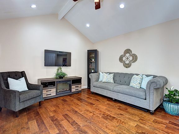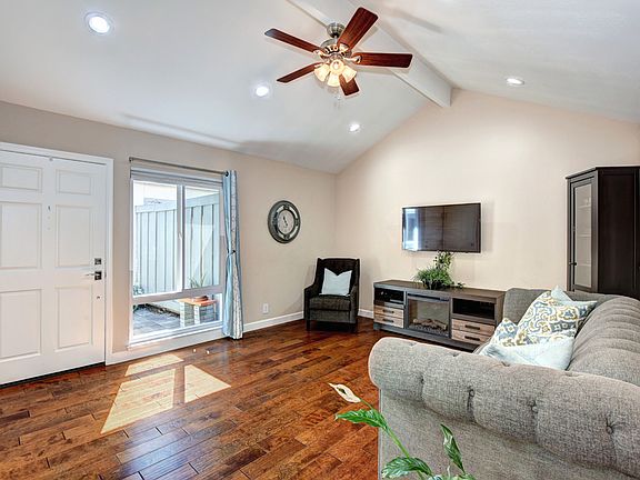 Bright, beautifully remodeled 1,147 sq. ft. 3-bedroom, 2-bath single-level townhome within walking distance to top schools, parks and downtown Pleasanton. No shared walls in living areas! The floor plan offers living and dining rooms, a gorgeous fully-equipped kitchen, nice-sized bedrooms and remodeled baths. Highlights include granite countertops, dual-pane vinyl windows, custom cherry cabinetry, recessed lighting, vaulted ceiling, ceiling fans, hardwood and tight-weave carpeted flooring, newer central A/C, tankless water heater, water softener and an oversized 2-car garage with storage. The smartly landscaped private front and rear patios are the perfect places to relax or play. And you're sure to enjoy the nearby community pool and Arroyo Del Valle walking trail. A rare, exciting find!