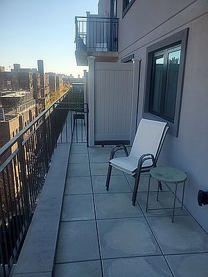 1/2 month OP Luxury studio with oversized balcony B/Q train Kings hwy shopping district Gym In door garage parking extra Elevator Live in super 2 shared outdoor spaces (courtyard and rooftop) Stainless steel appliance with dishwasher Washer dryer in unit Oversized balcony with great views L shape alcove living space Unit being painted again Will not last