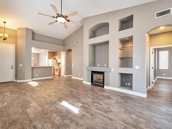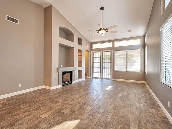 This former model home with 3 bedrooms, 2 baths and an open concept living area with a great room that has vaulted ceilings with a gas fireplace, built in custom media niche and surround sound also has plank tile floors throughout, with neutral interior paint, tall baseboards, ceiling fans, nice appliances and a washer/dryer. The layout of the home has split bedrooms and a large master suite with bay window, dual vanities, separate tub/shower, water closet and spacious walk in closet. The home also has a large kitchen, generous cabinet space, pantry and island with a dining area and bay window. The home is North/South facing in a very desirable area of Chandler with award winning schools. This darling home won't last so see today! Landlord pet discretion upon breed, refundable pet deposit required. No smoking. Pet deposit $500. $350.00 non-refundable cleaning fee. Pest control service and HOA fee included.