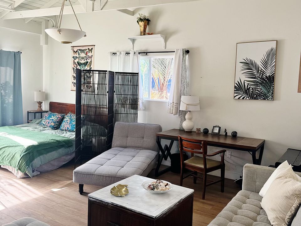 This studio has an open floor plan with its own private yard. Refrigerator/Range/Garbage disposal included. Washer/Dryer hookups Renter is responsible for utilities. No smoking. Last months rent is due at signing contract