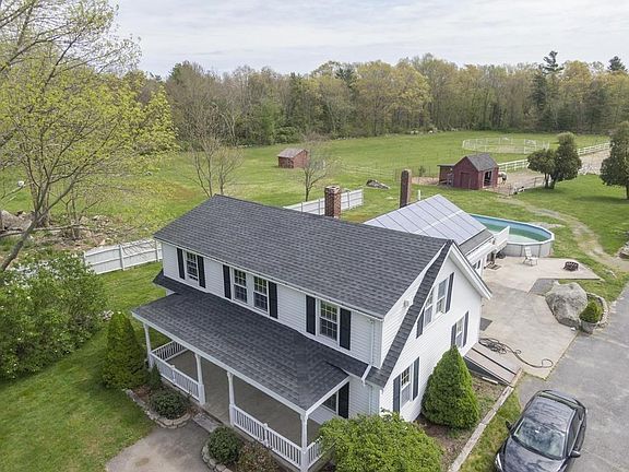 This older colonial home has been tastefully updated with 2 car garage, country setting, original woodwork, refinished hardwood floors throughout the home, updated kitchen/ baths and first floor laundry, pellet stove in the living room, French doors, large deck with 36ft oval above ground pool, large 30' x 35' barn (needs work), large attached workshop, green house currently used as a trash shed, 4 paddocks, 3 run in sheds, and 1 in/out stall that can house up to 10 horses. Extra large riding ring 70' x 150', electric fences, 3 frost free water hydrants that are well water run that is separate from home. Electric at each paddock and solar panels on main home roof and back of barn to save on electricity bill, Title V approved. Serious inquiries only with pre-approval required. This is an animal lover's delight! Possible sub-division of land with a retreat lot of 8 acres in rear of property. Price decreased to $499,900. Easy to show and owner can accommodate quick closing.