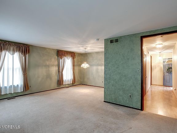 This perfect sized rancher is an ideal home for those seeking a combination of spacious living, convenience, and natural beauty. Designed with accessibility in mind, the home features multiple handicap ramps and custom accessories that make navigating the space comfortable and easy. With 3 spacious bedrooms and 3.5 bathrooms, this home offers ample room for both privacy and relaxation. As you enter, you are welcomed into a large living room and dining room combination, perfect for entertaining or enjoying family time. The open floor plan creates a seamless flow of space, offering plenty of room for gatherings or quiet moments. The eat-in kitchen is well-equipped and thoughtfully designed, providing a comfortable space for preparing meals. Accessed through elegant French doors, the adjoini