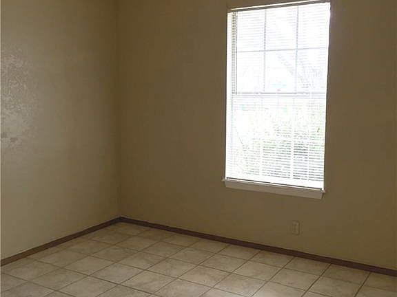 2 bedroom, 1 bath duplex with one car garage and fenced back yard. Kitchen overlooks eating area with refrigerator, stove, and dishwasher. Laundry room has washer/dryer hookups. Shower/tub combo in bathroom. Ceramic tile throughout unit. Tenant pays electric, gas, water/trash. Corner lot.