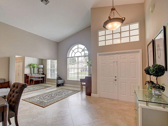 This wonderfully updated, maintained and loved 4-bed 3-bath home in gated Binks Hidden Creek may be just what you've been looking for. Its open floorplan with high ceilings offers huge views of the pool and spa with waterfall in a large screened enclosure overlooking the private Wellington National Golf Club, The open concept kitchen has updated cabinets with full pull-out drawers, granite counters and backsplash with separate oven and cooktop. The Master suite features an extended sitting area that can be an office or gym! Beds 2&3 share the cabana bath and bed 4 has it's own ensuite bath that's great for in-laws. There's a 3-car garage and driveway. The 75x130 lot with no rear neighbors creates a peaceful park-like setting. Walk/bike to Binks Elem or Landings Middle!