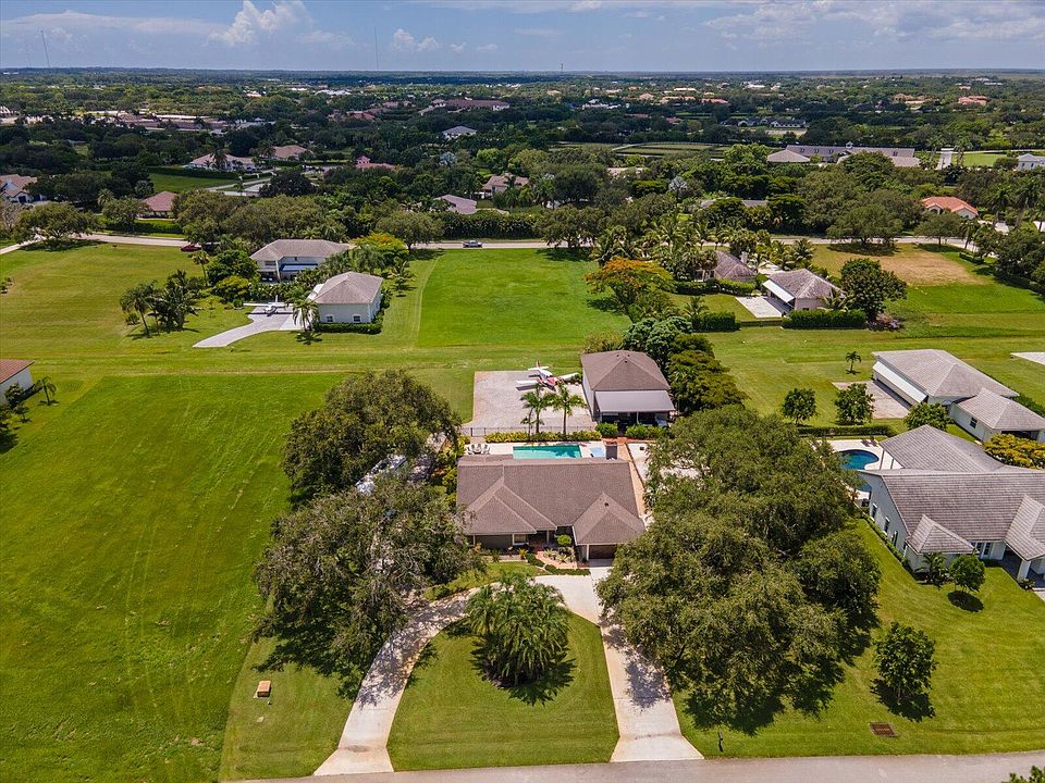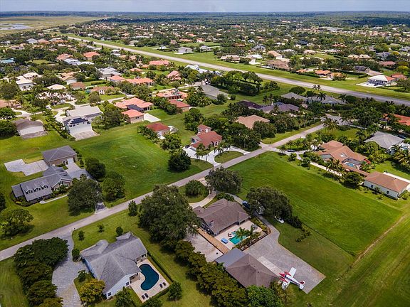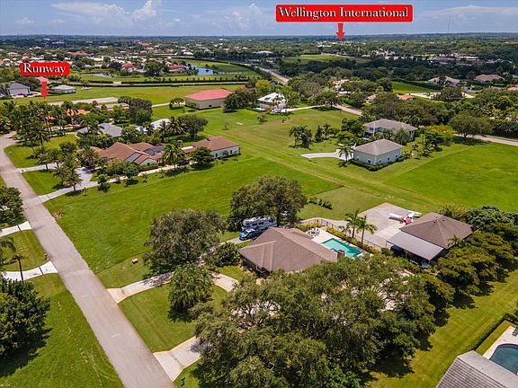 An aviator's dream location....Keep your plane in your backyard! This property was extensively renovated 4 years ago. The 4 bedroom, 3.1 bathroom one level, open floor plan, pool hangar home is located on a taxiway, only 5 lots away from the 4000' paved runway of the Aero Club private airpark. The lobby opens up into a bright and spacious modern living/kitchen concept with a bar alcove and great room. This home has been designed for luxury living as well as privacy, with a deep pool patio to enjoy the recently built, heated pool with deep decking and a large shaded adjacent Bocce court. New hurricane impact windows being installed throughout. The Primary bedroom has an expansive walk-in closet and fully renovated, luxury bathroom. Modern ceramic tile throughout. The hanger is approx 41'' wide x 33'' deep with 15'' height opening. The Aero Club community consists of approx 254 homes and contains 3 Village of Wellington landscaped pocket parks, giving the neighborhood a highly aesthetic appeal, yet with low HOA dues. Aero Club is also located within a highly desirable A rated school district. The Aero Club community is a private aviation community located only a 1 mile golf cart ride from the Wellington National (WEF) show grounds, and 25 minutes from Palm Beach and the beaches. The community boasts a private 4,000' asphalt runway with a fuel station supplying resident's with favorably priced Avgas and Jetfuel. The airport has PAPI lights and an AWOS system. Aero Club will accommodate light jets up to 12,500lbs. The True Grid taxiway system is an all weather taxi way grid system able to sustain light jets, yet aesthetically appealing. This property is located just 5 lots away from the runway. Helicopters are also permitted in the Aero Club. DISCLAIMER: All information provided to you with regard to this property by the Realtor and Assocs. has been obtained from third parties such as the MLS, public records and other sources. All Buyers should independently verify all information provided regarding this property. The Sellers, Realtor and Broker make no representation as to the accuracy of this information. All Buyers should perform their own independent due diligence regarding this Property before executing a Contract for Sale and Purchase.