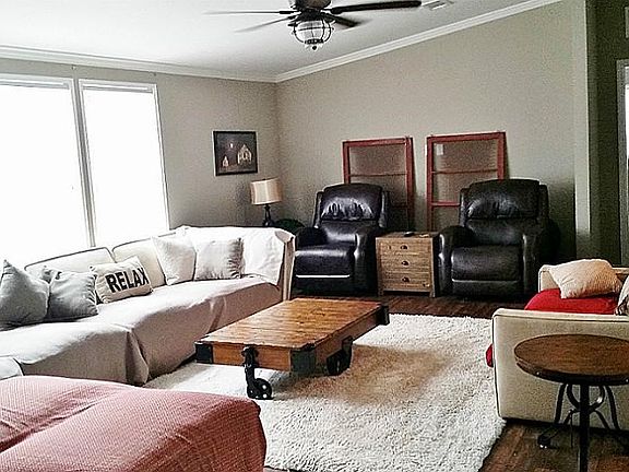 Must see 10 acres, private, unrestricted, 2356 sq. ft. 2014 Palm Harbor home. Gorgeous 4/2 with island kitchen open to living / dining. Master bdrm big enough to also have office or work out machines in. Large master walk in closet. Walk in kitchen pantry. Laundry area/mud room off back door. Two secondary bedrooms have walk in closets. Land partially cleared in the center, wooded perimeter w/ walking path. 2 RV hook ups with water, power & sewer. 2 buildings w/electric, 1 w/water and electric.