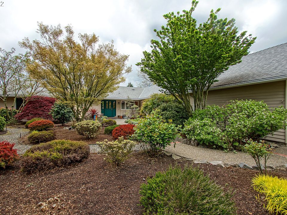 New on the market in Oak Hills, Oregon's 1st Mid-Century Historic District! This one level home is the perfect example of MCM meets NW Contemporary: vaulted ceilings, huge windows, warm hardwoods, flowing floorplan. Impeccably maintained with modern updates, including full primary suite with huge walk-in closet and laundry center, a 4th bedr perf for crafting/office/gym, and a finished shop! Entertain in or out on the large patio surrounded by lush grounds. All this plus Pool & Rec Center!