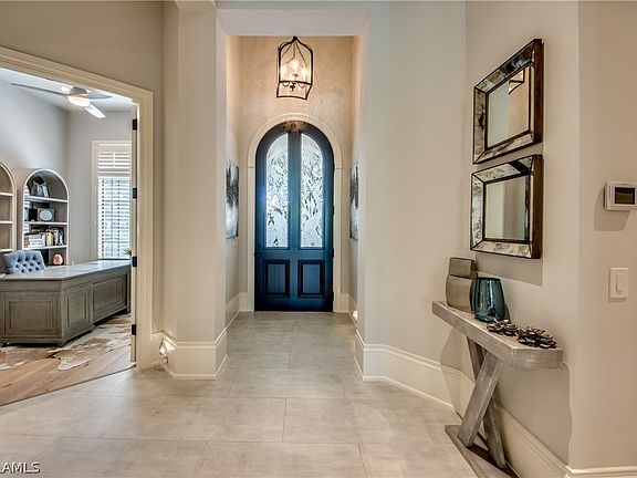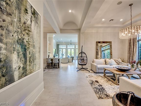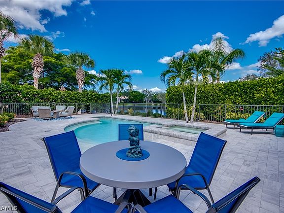 TURNKEY, back on the Market! This soothing sanctuary comes completely remodeled and fully furnished. Step through the entrance and relax in this amazingly beautiful property. Every surface has been reimagined. THIS home is offered furnished. This Clive Daniel designed interior flows effortlessly optimizing over 3000 sf of contemporary split floorpan. Ample room for family and friends with 3 bedroom plus den and 3 1/2 baths. Cool bright elegantly decorated, plantation shutters, with a lakefront gas heated pool and jacuzzi. The kitchen boasts leather quartz, upgraded appliances, Thermador refrigerator, gas cooktop, double oven, wine cooler/bar. All new flooring 18"X30" soft gray tile in the family areas and soft toned wood in the bedrooms. This totally modern home comes with high impact hurricane windows, security system, and a separate garage A/C . Located in the desirable Villerosi subdivision of Mediterra with the newly renovated 60000sf club house, 2 Tom Fazio designed 18 hole courses, and a 10000 sf Beach Club on Little Hickory Island make this Naples beauty an excellent place to call home. Bring your clubs, tennis and pickle ball rackets. Game on.