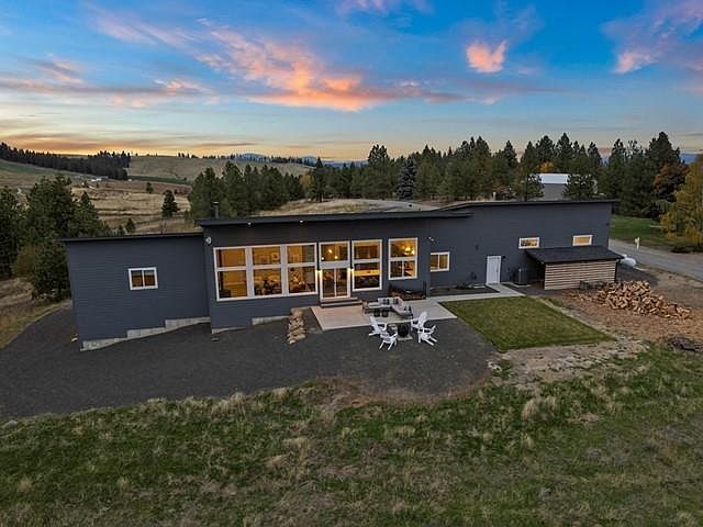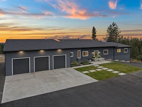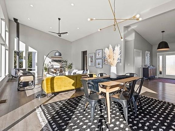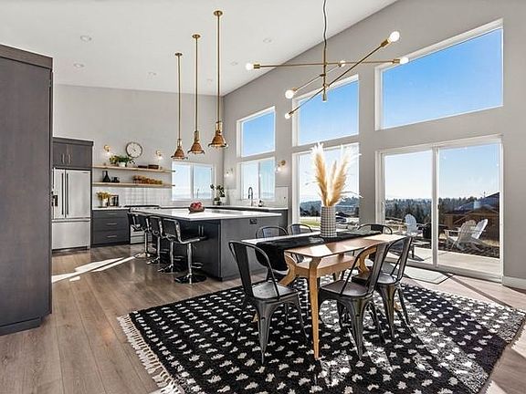 Modern better than new custom home with the perfect vintage touches on 5 acres. Mead Schools, Spectacular views - Wall of windows (dual glazed), 6 car attached garage (40x40 heated.) This home was built for entertaining - the biggest kitchen island you've ever seen in a gorgeous kitchen. Views - panoramic views to the South - mountains and city & peaceful views to the North. The style and attention to detail will blow your mind - each light fixture is special. The primary suite is a dream come true - 2 walk in closets, "netflix nook", gorgeous on-suite with claw foot tub and gigantic party shower. Did I mention the huge storage space underneath with 10ft ceilings that could easily be converted to an in-law suite with its own entrance. This home is pure magic .... the acreage, views, style, garage, main level living, separate laundry room, separate mud room, modern landscaping - it has it all! My very favorite feature is the front door dual opening side light doors.