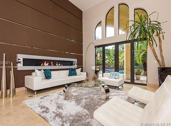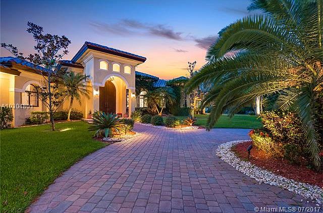 Magnificent custom built Mediterranean style acre+ estate with ultra modern finishes. Grand entry with long private drive leading to this 4/4.5 with Den & 3 car garage. Foyer entry opens into the flowing floor plan with marble flooring, high ceilings, 14 ft river rock waterfall, natural lighting & gorgeous views. Kitchen boasts Thermador appliances, granite, custom cabinetry & cooking island. Huge family room with modern built ins. Large bedrooms with walnut floors and finished closets. Interior doors are imported from Brazil, impact glass and doors. Secluded yard with covered patios overlooking lushly landscaped yard and sparkling pool. Everything has been done in this 7 year old knock out, move right in. Terrific location- access to shopping, highways & excellent schools. A MUST SEE!