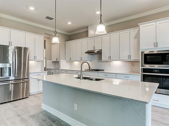 Step inside this newly constructed Richmond model in Country Club East and prepare to fall in love! The Richmond model is the largest home currently being built by Lennar in Country Club East in Lakewood Ranch. This particular home sits on a large corner lot and boasts 4 large bedrooms, 3 private bathrooms, over 2700 sq ft, and absolutely zero carpet. This house was built with an open floor plan in mind and is perfect for entertaining guests or even the largest family. The kitchen is a chef's dream and has oversized island that features white quartz counter tops, which match perfectly with the white cabinets and stainless steal appliances. Just off the living room sits the large master bedroom and luxurious master bath. The Master bath boasts a large soaking tub and an even larger walk in shower. The Master closet is huge and sure to offer enough space for all your clothes and shoes. Doing laundry will also be a breeze as the laundry room and master closet are connected. This will surely make folding and putting away laundry something that can be accomplished in record time. Guest bedrooms two and three are towards the front of the home and share an oversized Jack & Jill bathroom. Go ahead and venture out to the screened in lanai, there you will find your very own summer kitchen with a stone backsplash ready to use just in time for those summer cook outs. Last but certainly not least, don't forget this home has a three car garage that is spacious enough to keep all of you and your children's toys in! Perfect for a family or as a holiday retreat, this home is ideally positioned to enjoy the proximity to beaches, cafes, restaurants, polo fields, a movie theater (that serves beer and wine), UTC Mall and a selection of premier schools. This home was just completed and is move in ready for you and your family. the community amenities include The Retreat which consists of a community pool, fitness center, and common indoor kitchen/eating area and use of satellite pools around the community. Photography, renderings, and virtual tour are all of the model home and for display purposes only and do not represent the actual home but the same model. - the model home furniture, accessories, wall-coverings, landscaping, and options are not included in the price of the home. Updated pictures of actual home coming soon.