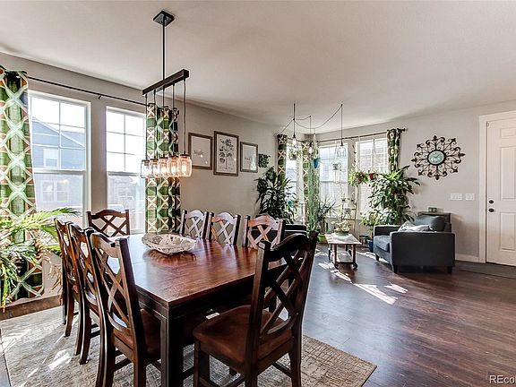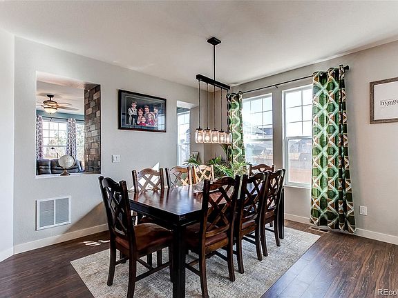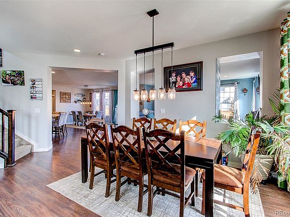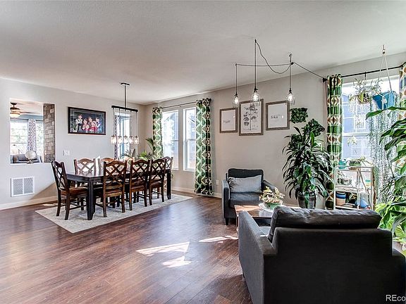 You will love this amazing "modern farmhouse" home in the great neighborhood of Trailside! As you walk up you'll see the inviting porch area perfect for flowers and a sitting bench. As you go into the house you'll first notice the luxury laminate wood flooring throughout the whole main level. It's perfect for kids and pets as it's low maintence and scratch resistance. You'll see lots of light coming through the big windows and love the openness that welcomes you. The custom lighting is very inviting with warmth and beauty. You'll love to be in the kitchen, and is great for lots of people! From the huge quartz island with barstools and a sink, to all the cabinet space and custom backsplash you'll love the welcoming feeling and special touches it offers. The upgraded stainless steel refrigerator and appliances look so modern yet blend in perfectly with the modern farmhouse touches. The gas range,double oven and large pantry are such nice features in this home for big families. Upstairs you'll be greeted with a large loft area with 3 additional bedrooms and a large master bedroom and bathroom. The master bedroom also offers his and her closets to really have your own space. It's a great space for big families with good sized rooms and closets.As you go into the basement you'll find a little study nook perfect for a quiet area and then a bathroom with a tiled shower. There's a great room that needs a little finishing still, but is a great space for a great room or playroom .Then the 5th bedroom is very large with a big window and closet. There's also a very good sized additional storage room in the basement. The Backyard has a great patio area with pavers. There's also plenty of grass to kids, too. Such a great neighborhood close to Costco, restaurants, shopping, and great schools. Close to freeway and e-470. You'll want to check this out and not miss this one!!
