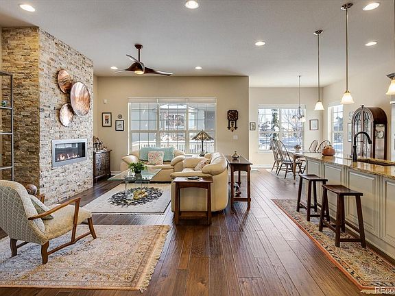 • Description: Hardwood Flooring, Stacked Stone Fireplace, Large Windows, Elegant Ceiling Fan, Open Concept Floor Plan