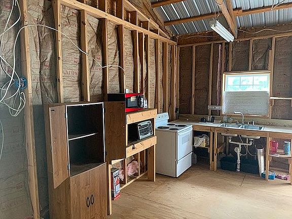 The house is in the process of being completed, but the owner wants the buyer to finish. Most of the materials are there for the buyer to finish. It has a large open porch, large covered area to park vehicles, on demand water heater, hardwood floors, and window units for air conditioning and electric heaters for heat. The house sits along the road, but natural growth hides it well.