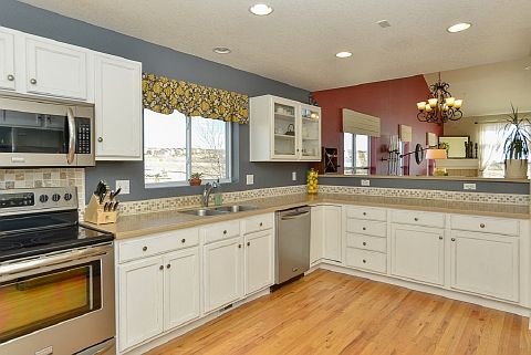 Attractive Jackson Creek 1.5-story features a MAIN LEVEL MASTER BEDROOM SUITE and IMPRESSIVE MOUNTAIN VIEWS! Handsome new hardwood wide-plank flooring extends throughout the main level and the kitchen includes new stainless steel microwave & gas stove. A large loft can be the family room or office. There are 9-ft ceilings and generous storage space in the basement. The upgraded exterior siding is easy-care stucco. Nicely landscaped yard with irrigation system & patio. This property is move-in ready!