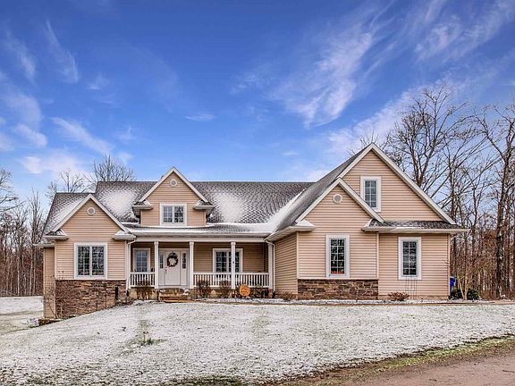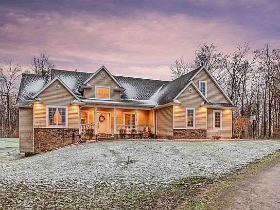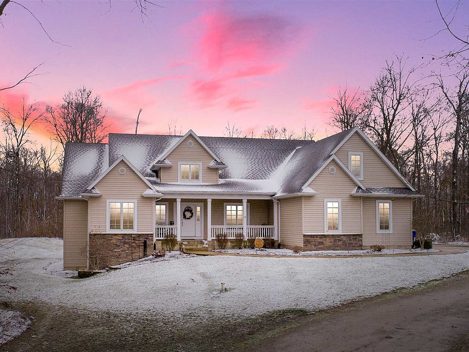 Seasonal scenic views abound with this custom built home! Gaze out the master bedroom picture window at glistening snow covered trees in the Winter. Watch the forest "Spring" to life from your screened in back porch. Enjoy star filled nighttime skies in the Summer from the beautiful stamped concrete patio and enjoy colorful Fall sunsets from your front porch. On the inside this private country retreat offers three bedrooms, two bathrooms, open concept living space and an office on the main floor. In the lower level you will find a fourth bedroom, third bathroom and a massive finished recreational space. Need storage? The home also boasts a walk up floored storage room over the garage and a large storage room in the basement. The home rests on 3.8 wooded acres in the sought after Leo School attendance area. Priced to sell at $389,900!