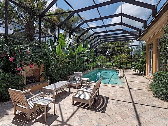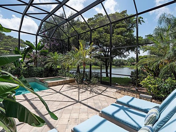 V.2872 - Stunning lakefront view as you enter the brick paver courtyard entry which sets the tone for gracious living in this exceptional 3 bed, 4 bath villa. A beautiful arched entry door leads into the great room highlighted by a wall of French doors. Fabulous upgrades throughout the home including volume ceilings, crown molding, wide floor moldings, plantation shutters, integrated sound system and imported Italian tile flooring. This plan also includes an expanded master bedroom plan. Professional chefs kitchen includes an eat-in area, stainless steel appliances, raised wood panel cabinetry, tumbled marble backsplashes, gorgeous granite countertops and a pass through into the formal dining room. The grand master suite offers a large master bedroom and spacious his and hers closets and separate baths! Luxurious and professionally landscaped screened lanai and covered loggia gathering area are highlighted by an outdoor fireplace and heated spillover spa and sparkling pool. Luxurious long lake views! Private beach club! 36 Holes of Tom Fazio golf courses.