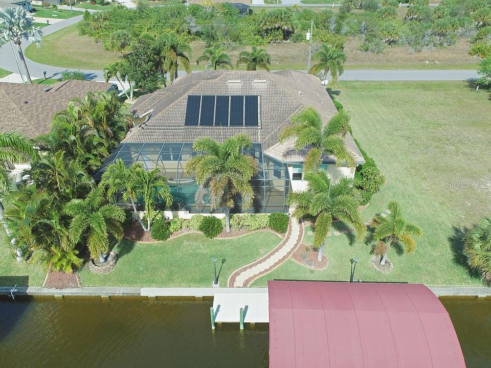 A Diamond Opportunity to own a beautiful home on a perfect canal in the highly sought after waterway community of South Gulf Cove. Tropical Landscaping surrounds the home and leads to an 80ft Seawall, Concrete Dock, a 12,000 lb Boat Lift with a new awning. The deep water canal is perfect for all types water activity. Sailboats, Motor boats, or Jet Skies . Luxury features throughout house. 12-13 ft. Tray Ceilings with Crown Molding throughout. Travertine and Engineered Wood Flooring. Beautiful Bathrooms. Large Laundry Room. 2-car Garage. Entertainment Center in Family Room and Bookcase with Desk in Office. Formal Living, Dining, Family Room , and Master all with water views. The Master Suite has a fabulous, luxurious en suite that features a soaking tub and a rain maker shower head. The Jack and Jill Bedrooms are roomy and connect to their bathroom. The Chef's Kitchen has all Stainless Monogram GE Appliances, Granite Countertops and Custom Cabinets. The AC and Hot Water Heater are new. The Seller's Disclosure covers all furnishings the convey with the home. The lot to the east is also for sale by same owner.