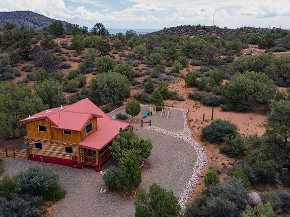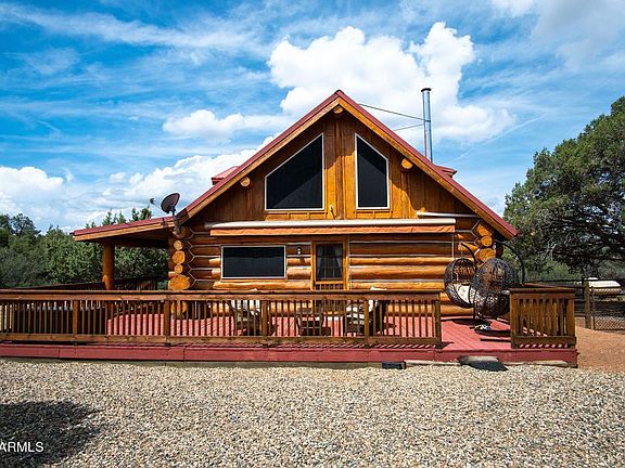Phenomenal custom true log home on just over 12 dividable acres ! Welcome to a place where the boundless beauty of nature and the indulgent feeling of log home living converge! Hand hewn log construction, includes open living area and features 2 bedrooms and 2 full baths. This exquisite natural paradise is equally welcoming to the wildlife in the surrounding area and endless hiking and opportunities to explore nature. Entertain yourself, family or guest's day or evening, with beautiful blue skies and mountains, or a spectacular show of stars as your backdrop at night, with breathtaking sunsets that can be viewed from your own private retreat!. Views of Granite mountain and the San Francisco peaks can be seen from your own property! Offered fully furnished!